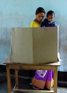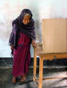 casting her vote at a polling station
