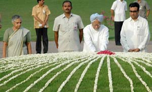 Manmohan Singh, paying floral tributes at Shantivan, the samadhi