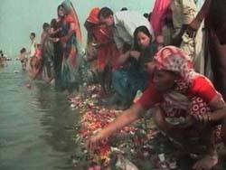 Hundreds of devotees converged on the banks of river Ganges in Allahabad to take