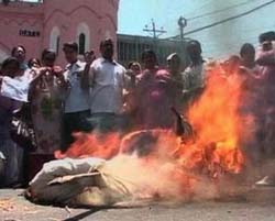 Amritsar: Agitated activists owing allegiance to Punjab Pradesh Mahila Congress Committee (PPMCC) blocked roads and chanted slogans in Amritsar on Monday to protest against politicians who were opposing the Women's Reservation Bill in Parliament. Sharad Yadav, chief of Janata Dal (United), had threatened to consume poison if the Women Reservation Bill is passed in the parliament in its present form. These activists offered poison to an effigy of Yadav and burnt his effigy after beating it with slippers. "We fulfilled his desire by offering poison to his effigy and also burnt his effigy. He can die if he wants to, so that the progress of Indian women is not stopped. The progress of women is India 's progress as well," said Ratna, an activist. Meanwhile, during the discussions in the Lok Sabha, chief of Samajwadi Party (SP), Mulayam Singh also opposed the women's reservation bill in its current form. The Bill has been pending since 1999, as pro-backward parties have been demanding 'a quota within quota' for women belonging to backward, minority and scheduled caste sections stalling the bill. Women across India have been lobbying intensely for the Bill, which seeks to reserve one-third of seats for them in the lower house of parliament and state legislatures.