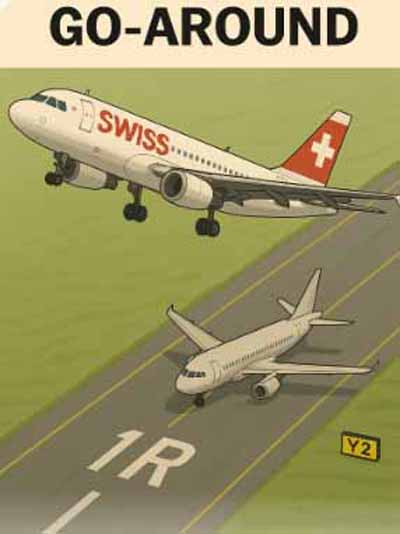 flight to go round instead of landing. Swiss aircraft was 1400 feet high and