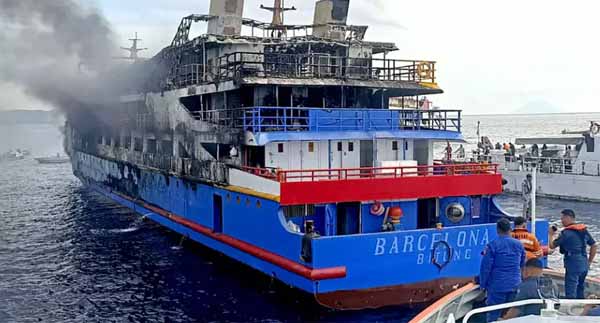 KM Barcelona caught fire around 1:30 p.m. local time. The ferry from the Talaud