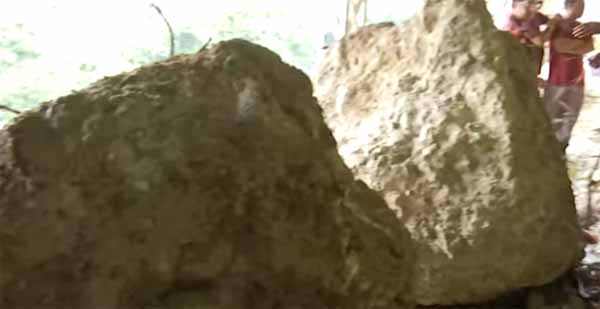 rolled down along with mud blocking the paths and damaging the structures on