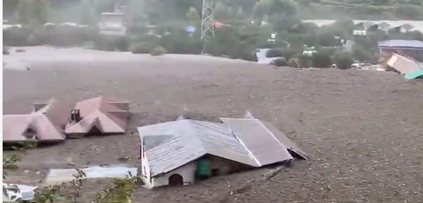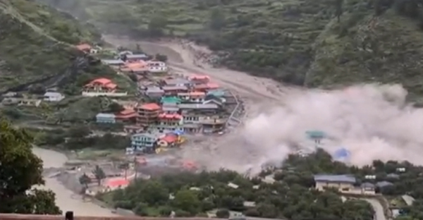 river, sending a violent surge of water and debris through Dharali and surrounding
