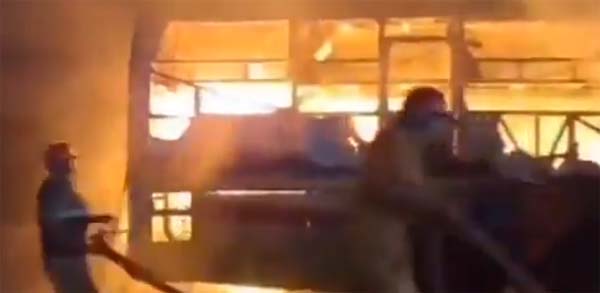 The incident occurred around 3 am. The bus caught fire after its fuel tank
