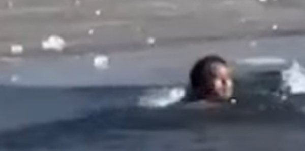 inhaling water. Get out of the hole, move on to hard ice and roll, and not walk,