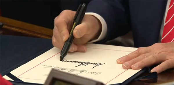 by 217–214 votes, after the Senate had cleared it earlier. Trump signed it immediately,