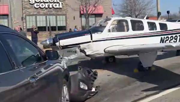 upon landing. During the collision, the plane's right wing clipped an SUV, dislodging
