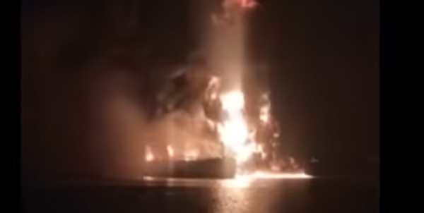 A Thai-flagged cargo ship, Mayuree Naree, was afire near Oman after attacked