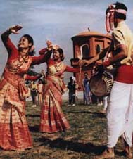 Puja, Diwali, Id ertc are also celebrated.By and large, the Assamese belong to the Vaishnavite faith. During Bihu, Boro Kachari tribals celebrate their own festival called Baishagu. The Mishing tribe also celebrates their Ali-Ali-Ligang around this time. Dimasa, Kherai and Tiwa are dances of certain other tribes. Ambubashi is a festival associated with the Kamakhya temple in Guwahati. A ritual of austerities, it is celebrated during mid-June with tantric rites, revolving round the `Shakti' cult. The temple remains closed for four days, during the goddess' annual cycle of menstruation. All religious and agricultural activities come to a standstill till the doors are opened on the 4th day.(For more details click here: The Goddess of Guwaharti) |