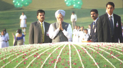 New Delhi: Prime Minister Dr Manmohan Singh today (Nov 14) paid homage to the country's firstprimeminister Jawaharlal Nehru on his 115th birth anniversary. Along with Congress president Sonia Gandhi, the PM paid tributes at Pandit Nehru's samadhi at Shanti Van. A host of leaders were also present on the occasion. Nehru's birthday is celebrated as Children's Day across the country. Affectionately remembered as "Chacha Nehru", Jawaharlal was known to be very fond of children. Born in 1889, he joined freedom movement against the British rule at a very early age. A close associate of the Father of the Nation, Mahatma Gandhi, he was imprisoned several times for political activity. Nehru was India's longest prime minister holding office from 1947 to 1964 when he died.