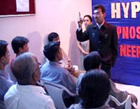 Bhopal: Neeraj Ahuja, a 19 years old hypnotherapist, holds hypnosis camp in Bhopal, where he teaches the positive aspects of hypnosis and his students range from jail inmates to doctors. Ahuja has already held some free camps as a run-up to two-day classes he plans to conduct during April. Within a span of two years, Ahuja claims to have cured around one thousand people through hypnosis. The people attending his training camps included 650 jail inmates and doctors from Jawahar Lal Nehru Cancer hospital in Bhopal. "The main thing is self-hypnosis. Self-hypnosis is the basis of hypnosis. How can one hypnotize a person, how can it be effectively used in the marketing field, relaxation techniques and for concentration. All the problems related to the mind can be cured through hypnosis," said Neeraj Ahuja, hypnotherapist. A hypnotherapist helps to use one's own powerful mind to increase motivation or change behaviour patterns by inducing a trance state. When hypnotized, the mind operates in its subconscious mode. "In hypnosis therapy, with the help of our dialogues,which we call as dialogues, we feed the programmes into the subconscious mind of the other person. And science proves that whatever enters the subconscious mind is followed by the body.That is why hypnosis is so effective," said Ahuja. Ahuja claims to