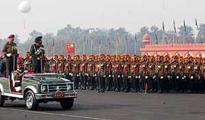 New Delhi: The Army on Sunday commemorated its 57th Foundation Day by paying homage to martyred soldiers. Chiefs of the three wings of the armed forces - Chief of Army Staff General Joginder Jaswant Singh, Navy Chief Admiral Arun Prakash and Chief of Air Staff Air Marshall SP Tyagi - offered floral tributes at the Amar Jawan Jyoti (Eternal Flame) at the India Gate memorial in the national capital New Delhi. Army Day is observed every year on January 15 to commemorate Field Marshal KM Cariappa's taking-over as the Commander-in-Chief of the Indian army from Sir Francis Butcher, the last British commander, in 1949. "On this day, we pledge that we'll continue to serve our nation and would not hesitate to lay down our lives for the country. This day is very important for the Army," General Joginder Jaswant Singh said. Various functions are being organised across the country to mark the occasion. Meanwhile, President APJ Abdul Kalam, Prime Minister Manmohan Singh and Defence Minister Pranab Mukherjee have extended their wishes to all members of the Army, to ex-servicemen and to their families. Extending his greetings and felicitations on the occasion, Kalam said: "It is a matter of pride that Indian Army has displayed high standards of excellence in all tasks entrusted to it. Their professionalism, humane spirit, positive attitude and commitment to the nation are praiseworthy. I am confident that our Army personnel are fully prepared to face any challenge that the future may present". Prime Minister Manmohan Singh said, "The Indian Army is a source of pride for our nation. It has played a commendable role in protecting the unity and integrity of our country, and in reaching out to people affected by natural calamities. Our