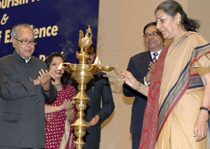 Union Minister of Tourism and Culture, Mrs Ambika Soni, lighting the lamp at the