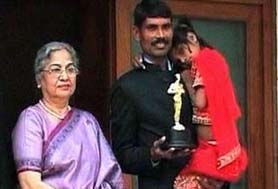Pinki Sonkar and her father at the PM's official residence
