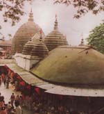 beginning on the 7th day of the Indian onth of Ashaad (June–July), Kamakhya temple observes a unique festival called ‘Ambubachi’ when, it is believed, the goddess menstruates. The festival draws a large number of pilgrims to temple. The legend : Despite her husband Lord Shiva’s disapproval, Sati had gone to attend the universal ‘yajna’ organised by her father Daksha. Shiva was not invited, and was also abused by Daksha. Unable to bear the insult, Sati committed suicide. Upon hearing the news , Shiv arrived on the scene, picked up the body and began a dance of destruction. Vishnu tried to pacify Shiva: the body was cut into 51 parts. The spots on earth where each part fell was identified as ‘peetha’. But the place where her uterus fell was not known till the god of love, Kamadeva, searched it out to rid himself of a ceratain curse of Brahma’s. Kama regains his body here. The place came to be known as ‘Kamarup’ and the presiding deity as ‘Kamakhya’ or one worshipped by Kama. The Temple : Although little is known about the early history of the temple, the first reference to the place has been traced back to the Allahabad inscriptions of Emperor Samudragupta. The present temple was built in 1665 by King Naranarayan of Cooch Behar. The main temple has seven oval spires, each topped by three golden pitchers. Pilgrims have to queue up at the entrance porch from where they move slowly into the semi – dark sanctum sanctorum. Images of gods and goddesses of Hindu pantheon are carved on the walls. The image of the Goddess alongwith other deities is kept on a throne. Pilgrims follow the narrow alley behind the throne to enter the sanctum sanctorum. Inside, a short flight of stairs will take you to a small subterranean pool. Pilgrims squat by the water’s edge and offer their ‘puja’ (worship). From here they can see the symbolic organ that remains covered with a red cloth. On an ordinary day, the temple remains open from 8 am till sunset, with a couple of hours break after 1.30 pm. The Festival : Every year, on the seventh day of Ashaad ( in 2002 it falls on 22 June), it is said that the pool containing the uterus turns red for three days.While there is no scientific backing to the event ( many believe that lots of vermillion powder is poured into the water, which then turns red). The holy water is distributed by the priests among the pilgrims.