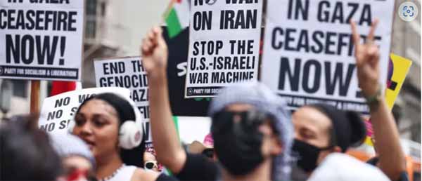 attacks in Gaza. The protesters demanded an immediate cease-fire.