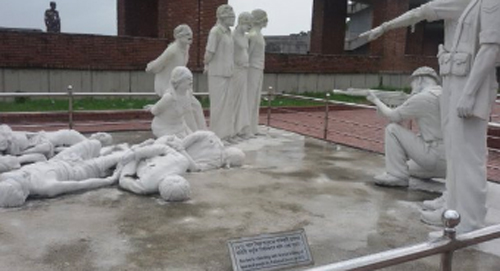 at #Mujibnagar in Khulna distt of Bangladesh depicts people/statues lying as