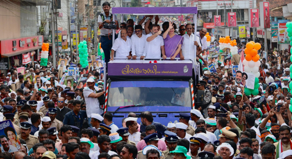 Earlier in the morning she held a roadshow in Kalpetta in an open vehicle accompanied