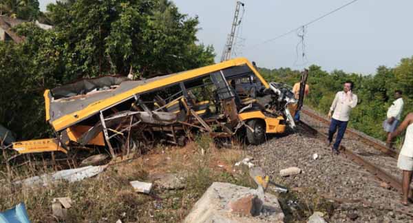 CUDDALORE (Tamil Nadu), July 8: A train collided with a school bus at a railway