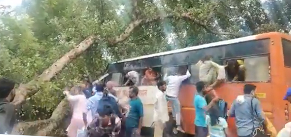 Friday morning when a massive tree collapsed onto a moving Uttar Pradesh Roadways