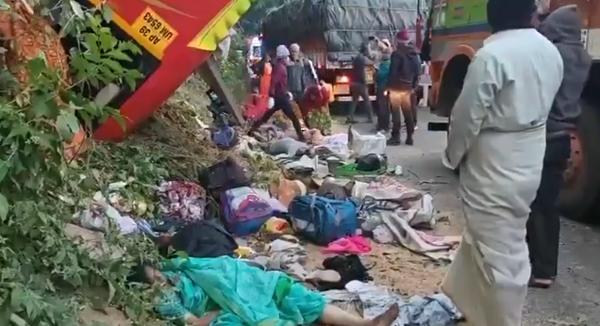 The bus from Chittoor was carrying tourists to Annavaram after visiting Bhadrachalam temple (Telangana). Locals said the bus was travelling at high speed and the driver failed to control the vehicle when it came to the curved section of the ghat road.