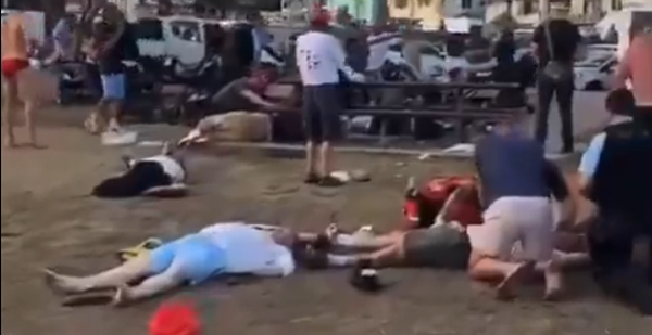 of beachgoers fleeing in panic.