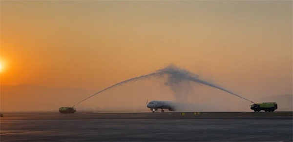 by airline staff, blending modern aviation milestones with cultural traditions.
