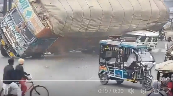 A CCTV captured the mishap that occurred at the busy Pahadi Gate intersection