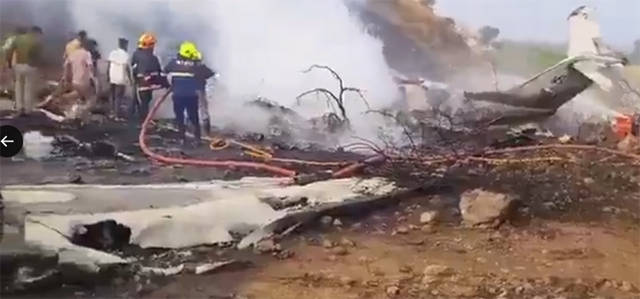 An eyewitness told ANI, "There was a massive explosion, we rushed and saw the aircraft on fire, again 4-5 explosions occurred."
